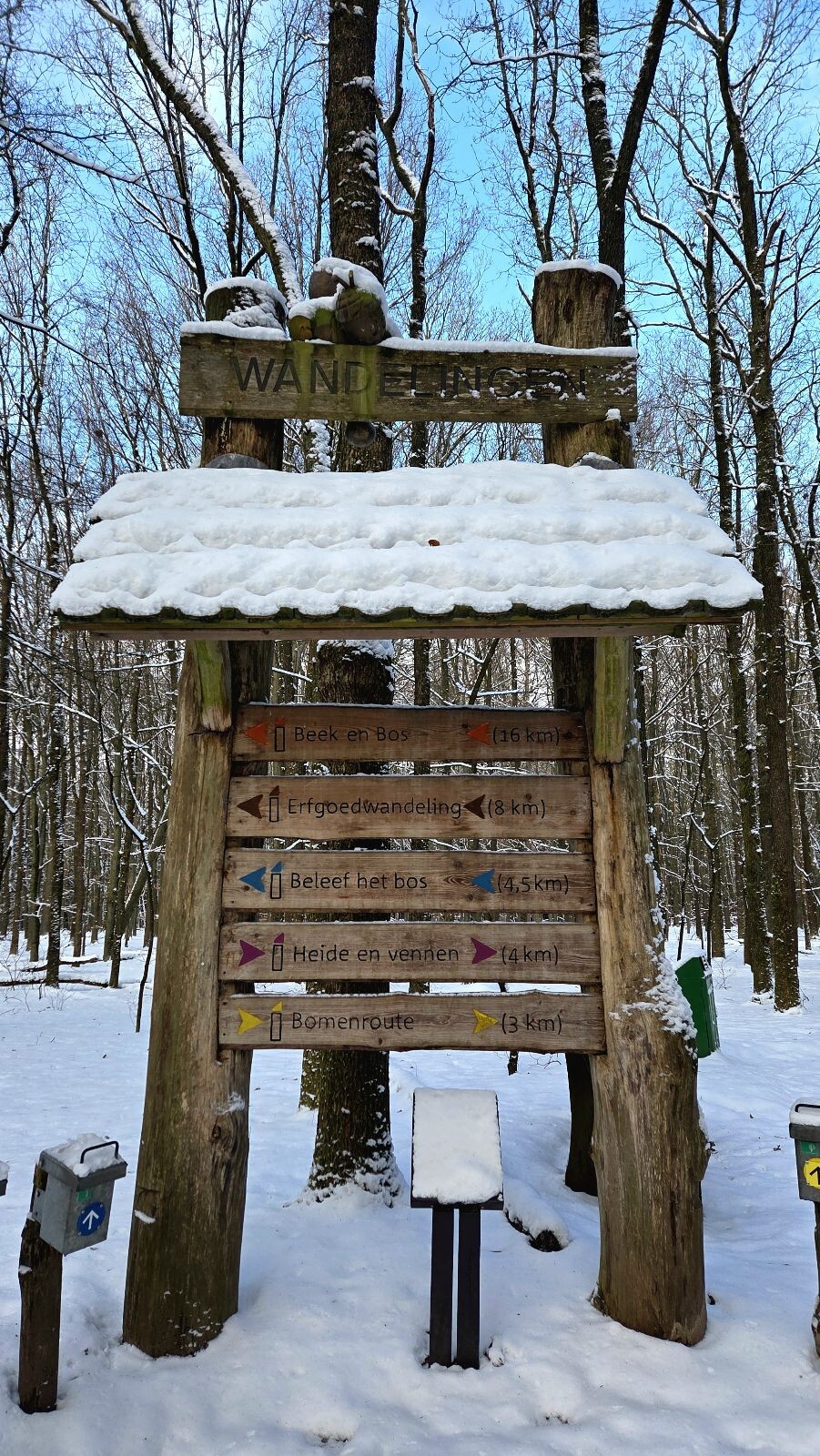 Prachtige wandeling door de sneeuw, vooral sporen van reeën en konijnen gezien. We maakten de 1e verse voetsporen in de sneeuw. Route begint bij het Boomkroonpad, extra op deze route om boven de boomtoppen te kijken. (Wel tegen betaling!)